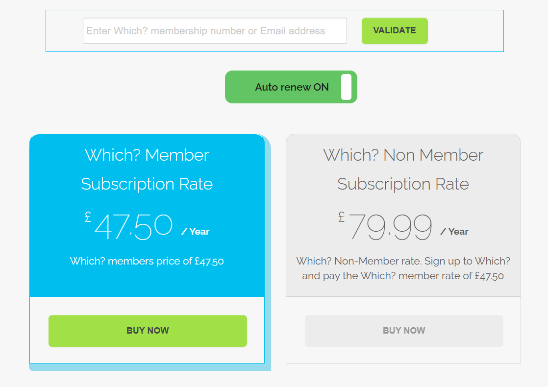 Which? Member rate will be blue if we detect an active membership which qualifies for the lower pricing plan.