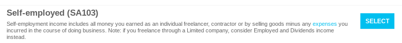 Select Self Employed (SA103) from the list shown.