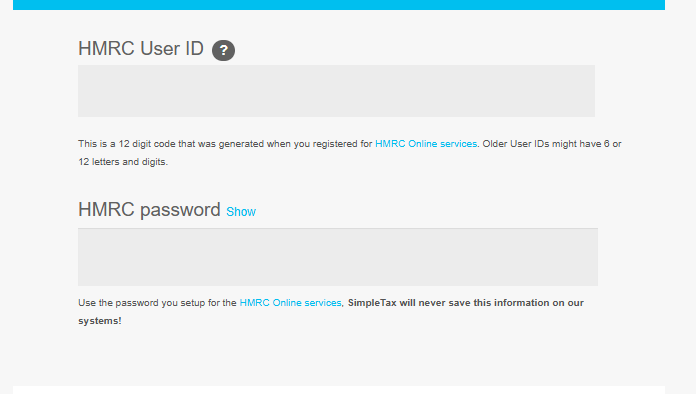 Enter your HMRC credentials (what you use to log into your self assessment record with HMRC)