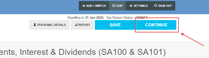 Click VALIDATE MY TAX RETURN or SAVE & CONTINUE