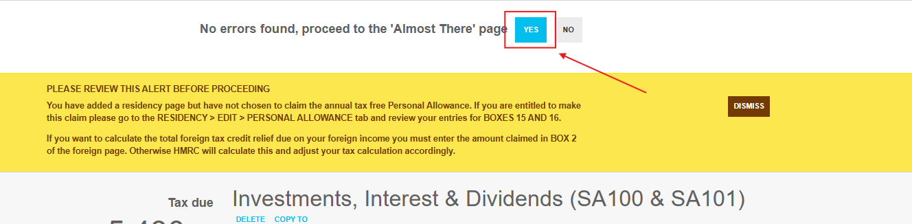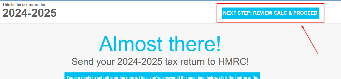 After you have entered your details, scroll back to the top of the page and click Next Step: Review calc & proceed