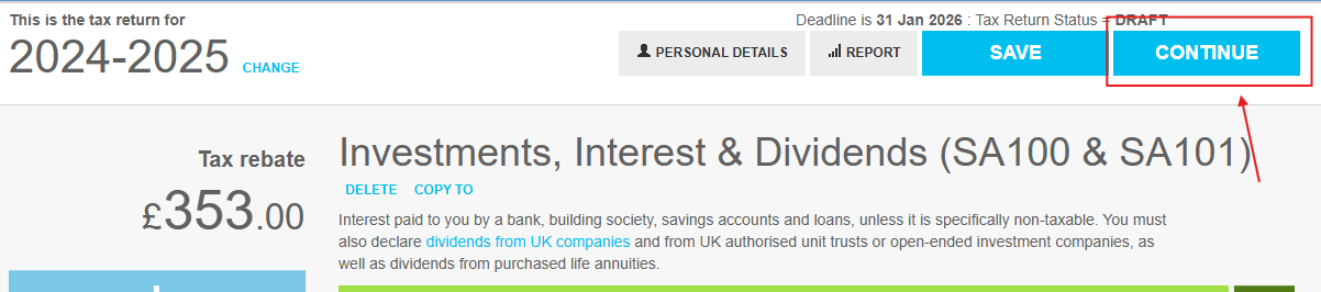 Ensure you have followed the instructions to state you are entitled to Blind Person's Allowance: SA100 TR 4 Box 13: How Do I Record that I am registered Blind? Navigate to the 'Almost there' page: Navigation: How to get to the 'Almost there' page ...