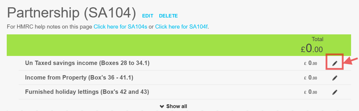 - Next, click the Pen icon where it says 'Untaxed savings income':