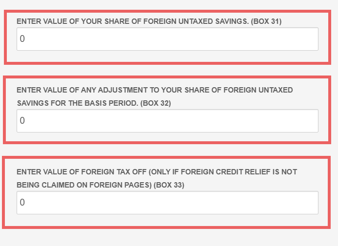 SA104 Box 34: How do I populate box 34 to show the adjusted foreign savings income (box 31 + box 32 minus box 33)?